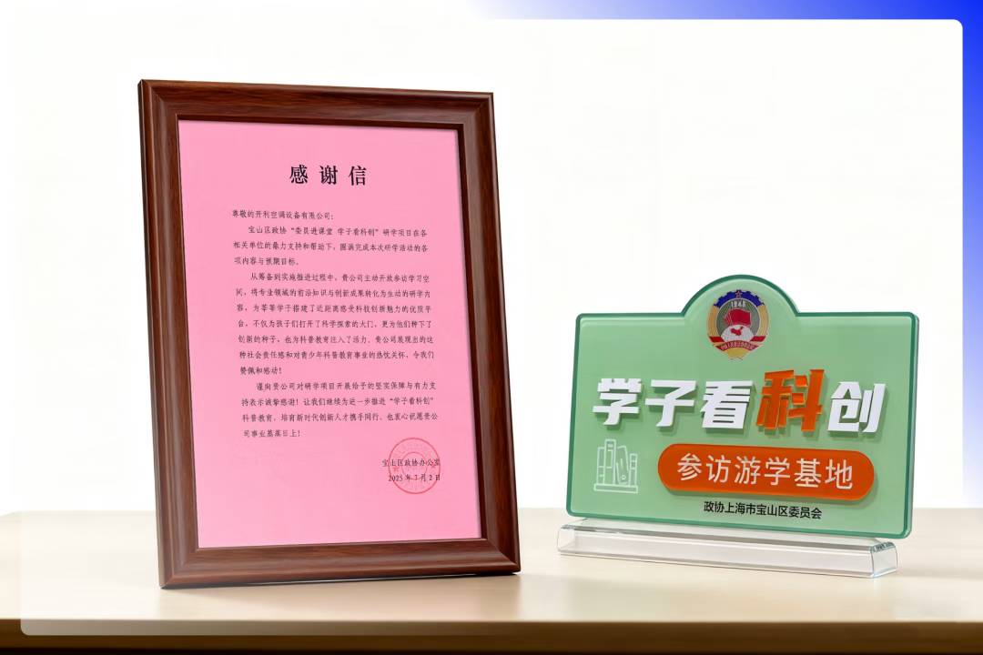 会上,开利空调博物馆荣获第二批“学子看科创”参访游学基地授牌。继获中国制冷学会、上海市制冷学会认证科普教育实践基地后,博物馆再次获得权威认证,充分彰显了开利在科技教育与社会实践领域的深耕与卓越贡献。博物馆藏品丰富、体验多元,长期接待学校师生参访学习,活动期间收获宝山区政协感谢信,高度认可科普成效。